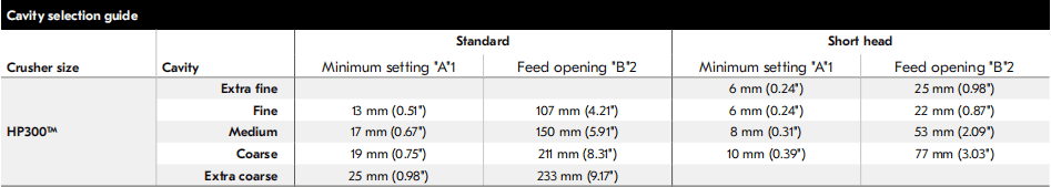 Série HP ™ Guide de sélection de cavité pour Concasseur à cône